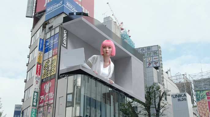 Shown between advertisements, the hyper-realistic feline comes to life on a 1,664-square-foot curved LED screen in the Shinjuku district. The 4K-resolution display shows the cat walking around high above the Japanese capital as it audibly meows.